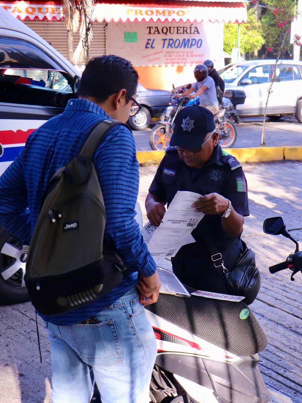 “Te pongo un ejemplo: por no traer licencia la mínima es de 1,357 y la máxima es 2,262 pesos, por no usar el casco de seguridad el costo es de 678 pesos y por no traer la placa es de 2 mil 262 pesos; los precios no los pone esta dirección, son precios establecidos que nos marca el tabulador y el mismo reglamento”.