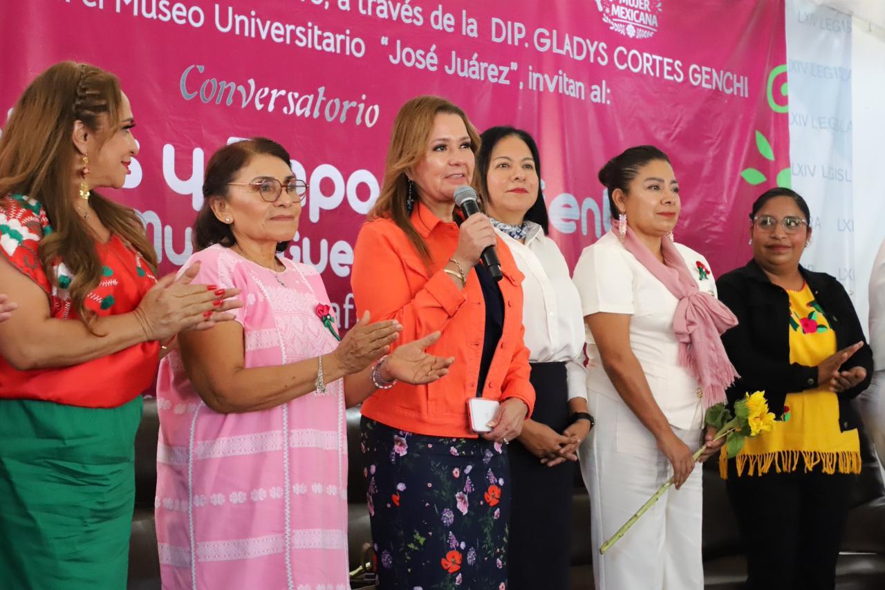 En el conversatorio participaron la diputada Catalina Apolinar Santiago, con el tema “El empoderamiento de la mujer indígena”; Anabela Latabán Campos, con la ponencia “Mujer y cultura”; la doctora Socorro Arriaga Rodríguez, con el tema “La salud con voz de mujer”; y Olivia Hidalgo Domínguez, con la exposición “La evolución de la participación de la mujer en México”.