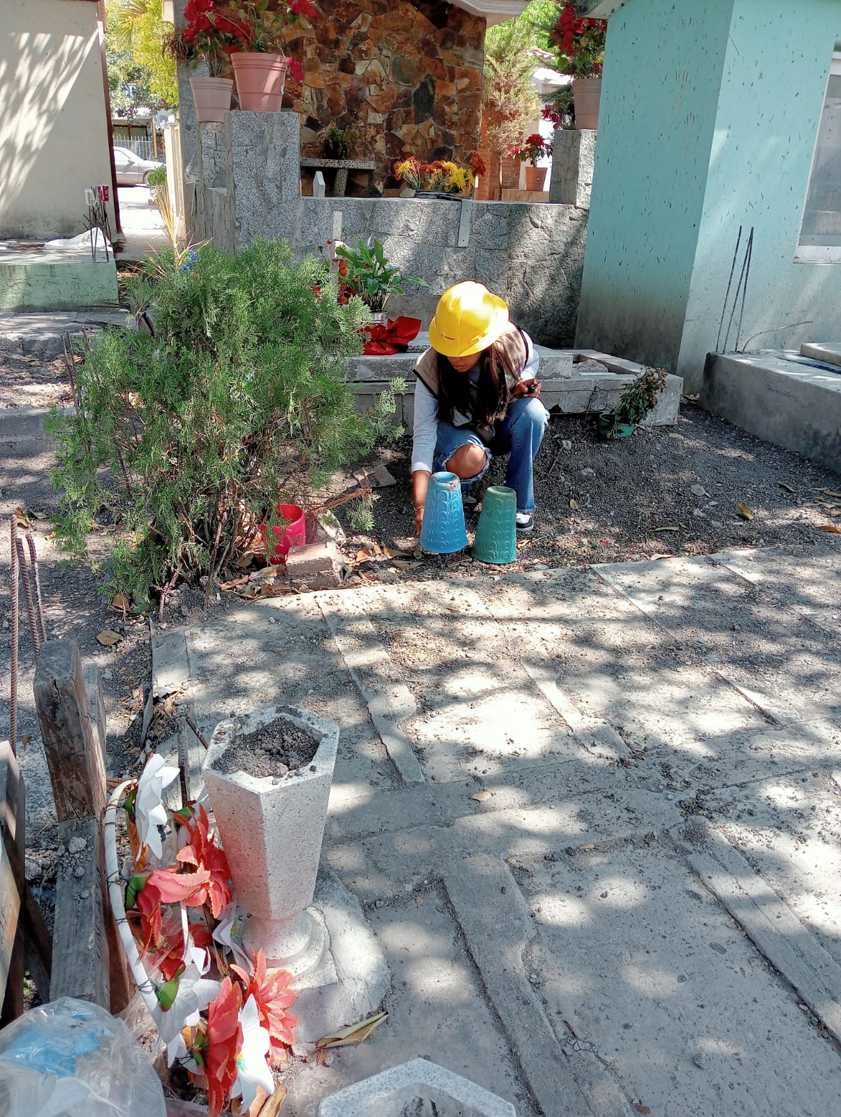 A través de la Dirección de Panteones también se realizan trabajos de mantenimiento general, limpieza de áreas comunes y abastecimiento de agua, para brindar espacios seguros, dignos y ordenados a las y los visitantes en esta fecha tan significativa.