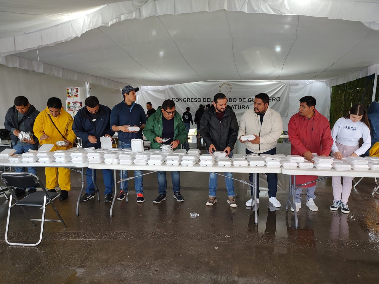 A iniciativa de las diputadas y diputados que integran la LXIV Legislatura, se instaló este viernes en las instalaciones del Congreso del Estado un centro de elaboración y distribución de alimentos en apoyo a los refugios temporales para damnificados del huracán John.