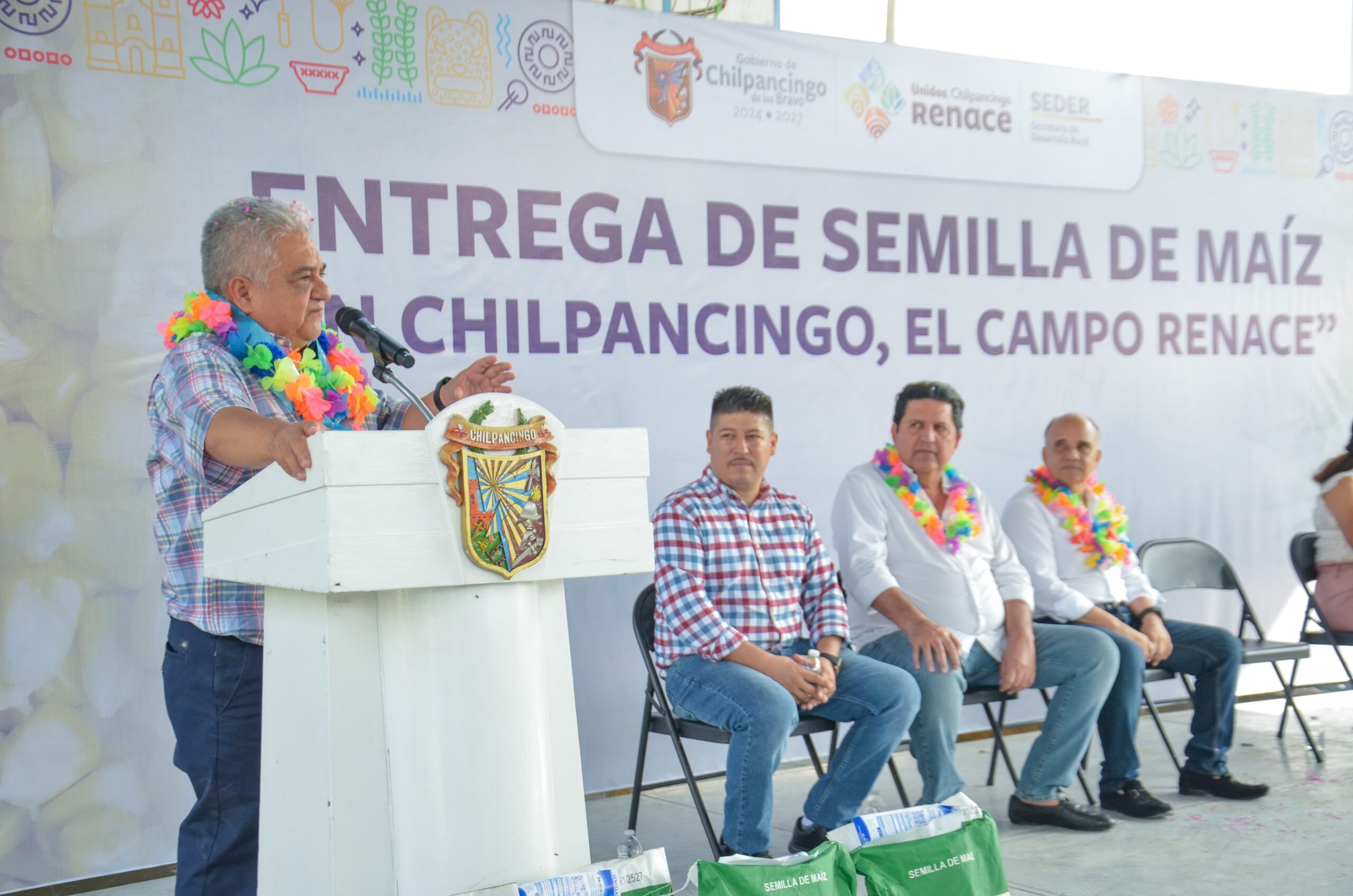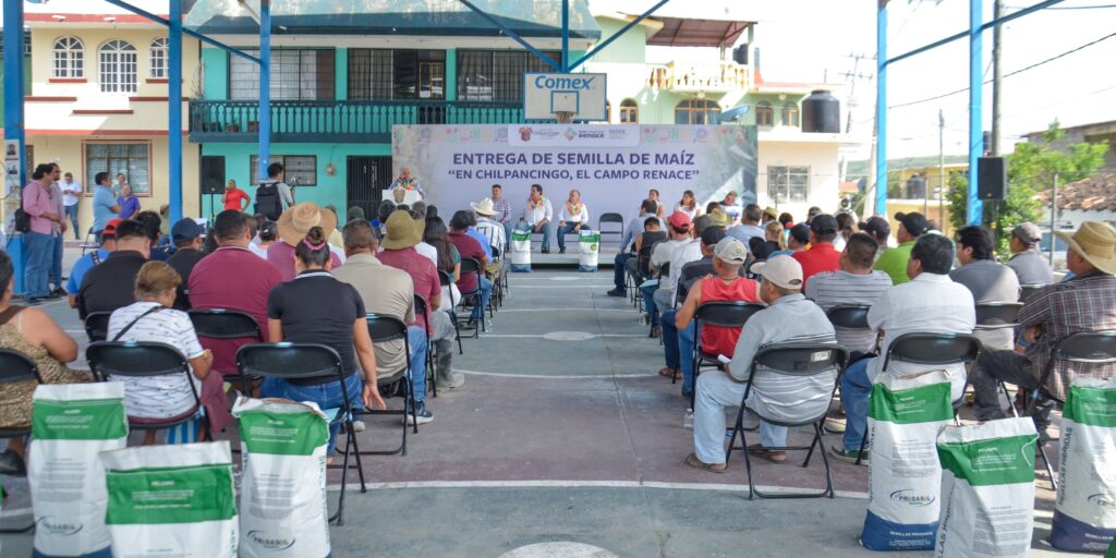 El alcalde de Chilpancingo, Gustavo Alarcón Herrera, encabezó la entrega del programa de semilla mejorada de maíz en beneficio de productoras y productores del valle de Mazatlán, Petaquillas, Tepechicotlán, Ocotito, Palo Blanco, Acahuizotla, entre otras comunidades rurales.
