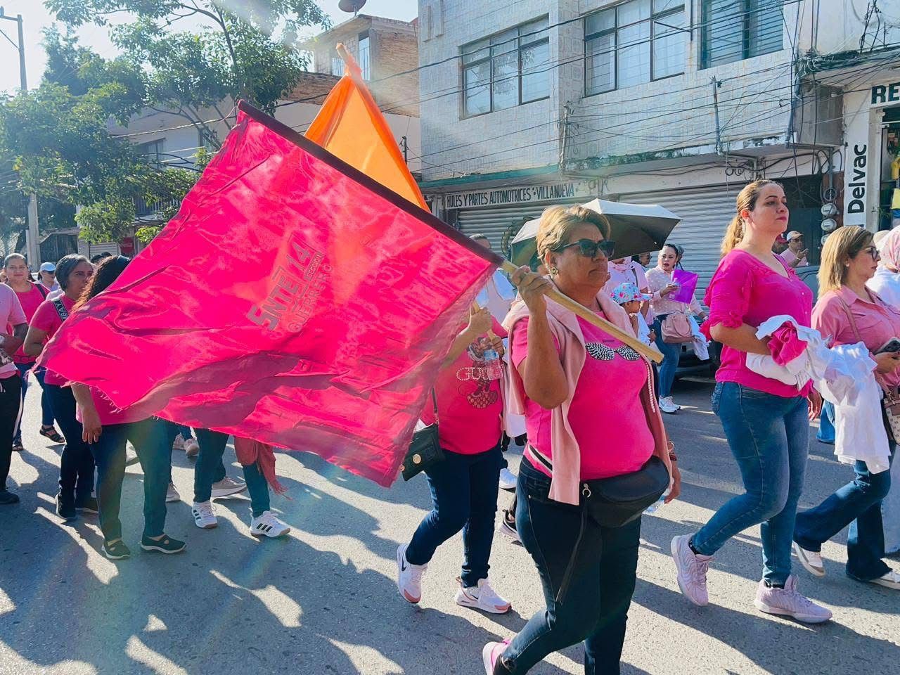 Iguala de la Independencia, Gro.— Con la participación de más de 3 mil mujeres de la región Norte, el Secretario General de la Sección 14 del SNTE, Mtro. Silvano Palacios Salgado, encabezó una caminata conmemorativa por el Día Mundial de la Lucha contra el Cáncer de Mama, celebrado cada 19 de octubre.