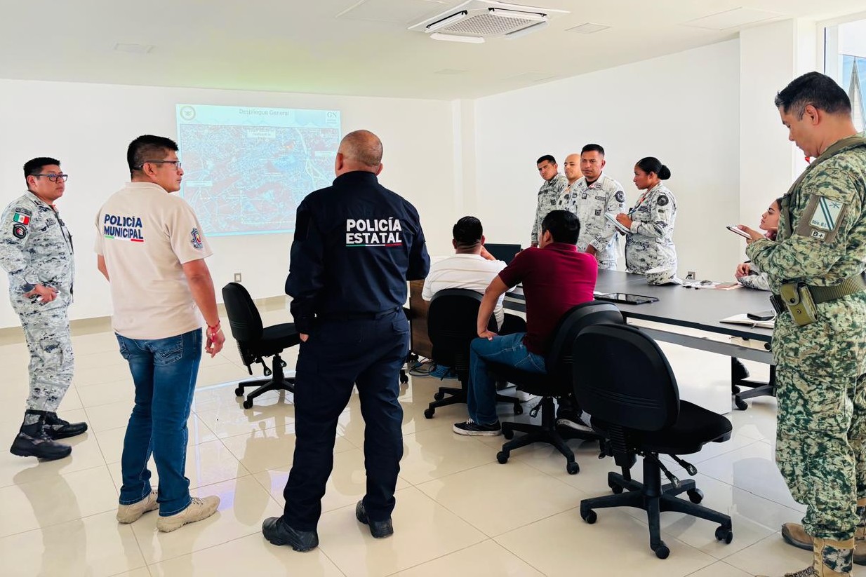 El encuentro forma parte de las acciones de la Mesa de Coordinación para la Construcción de la Paz, durante el cual las autoridades revisaron el despliegue operativo vigente con el objetivo de reforzar la presencia territorial, intensificar los recorridos preventivos y priorizar la atención en zonas críticas de la ciudad.