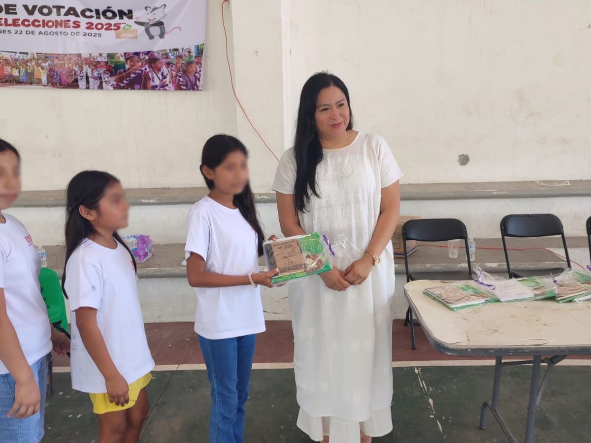 La consejera electoral Dulce Merary Villalobos Tlatempa, presidenta de la Comisión de Igualdad de Género, Inclusión y No Discriminación asistió al evento “Mini Elecciones Infantiles”, realizado en Tlacoachistlahuaca con la participación de 423 niñas y niños que ejercieron su voto para elegir entre dos planillas integradas de forma paritaria por 4 niñas y 4 niños.