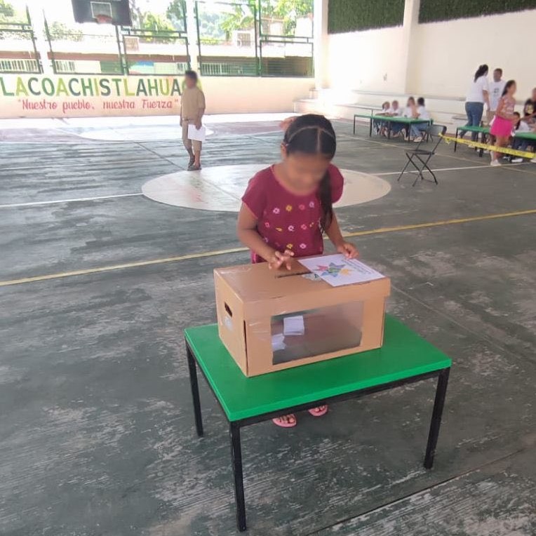 Esta actividad fue convocada por el Ayuntamiento de Tlacoachistlahuaca, a través de la Dirección de Transparencia y Acceso a la Información, quien solicitó el acompañamiento del Instituto Electoral y de Participación Ciudadana del Estado de Guerrero (IEPC Guerrero), y esta mañana la jornada de votación se aperturó a las 9:00 horas, donde la niñez participó en un ejercicio democrático emitiendo su voto por la planilla de su preferencia.